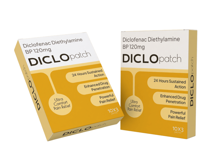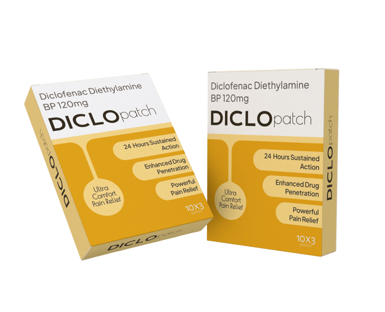 Diclopatch is a Diclofenac 120 mg transdermal patch formulated to provide targeted anti-inflammatory and pain-relieving action directly at the affected site.